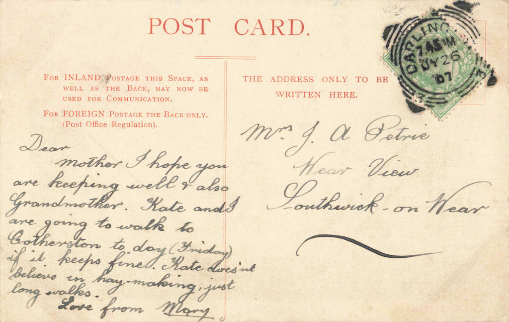 Postally used 1907