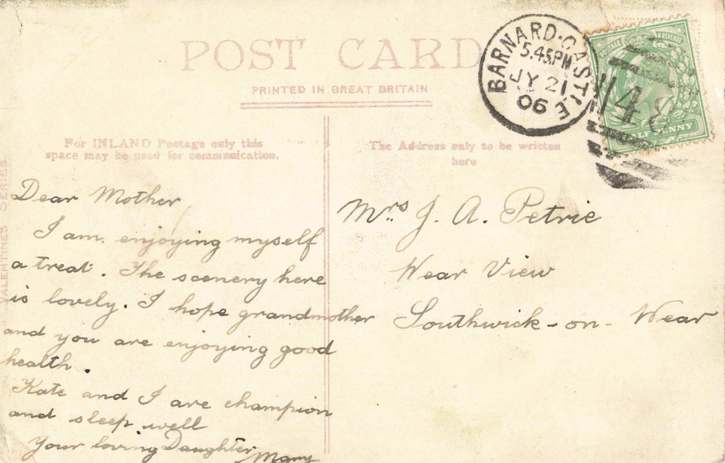 COTHERSTONE - 1907 POSTCARD, SPELT COTHERSTON (ref 6630/W7/25)